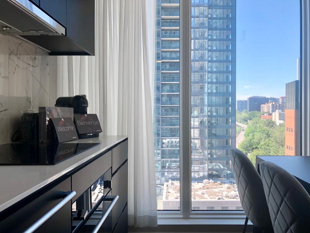 Luxury, fully furnished condominium 3 ½ in Tour des Canadiens 2 (TDC2) building in the heart of downtown Montreal's Golden Square. Easy access to public transportation, hospitals, universities, and other essentials.